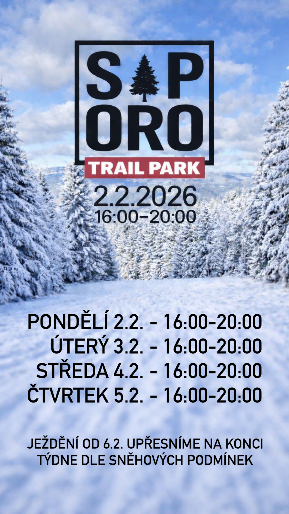 Padnul čerstvý sníh a tak přinášíme rozvrh našeho provozu na dalších pár dní. Skiareál SAPORO: 29.1. Čtvrtek - 16:00-20:00 30.1. Pátek - 09:00-20:00 31.1. Sobota - 09:00-20:00 1.2. Neděle - 09:00-20:00 Skiareál KRAJKA: ZAVŘENO Pro další a hlavně rychlejší informace o ježdění v našich kraslických areálech sledujte naše sociální sítě IG a FB!